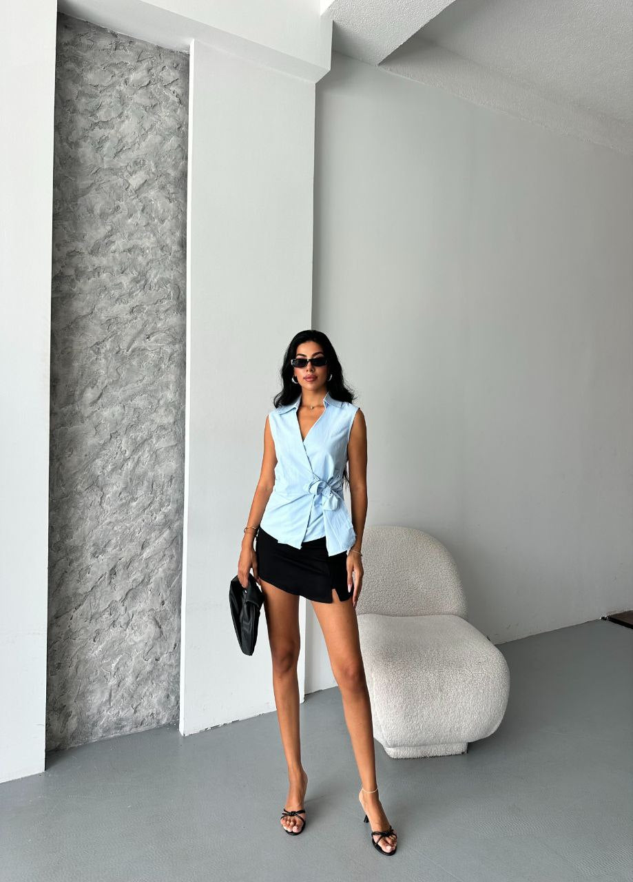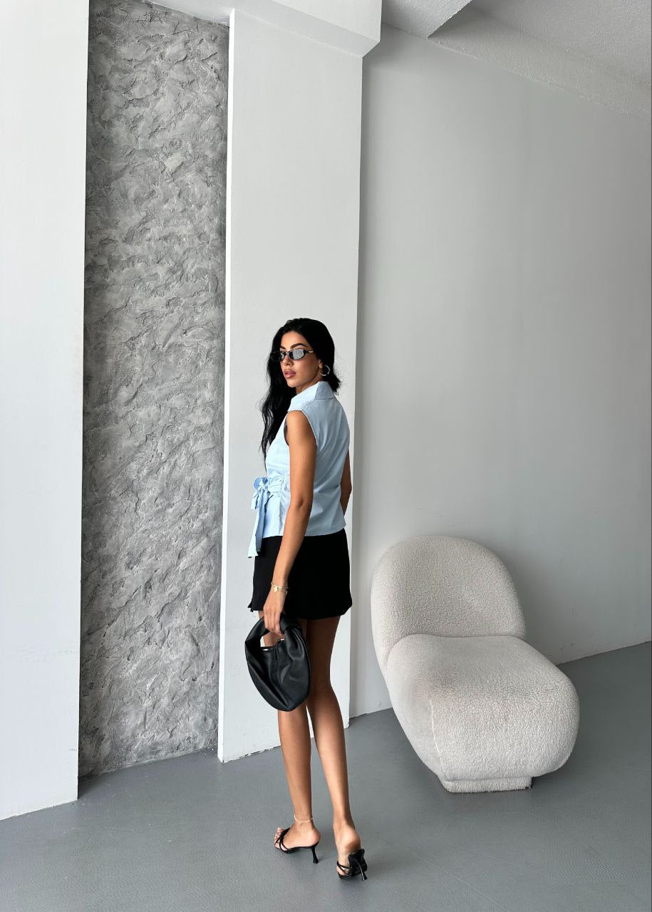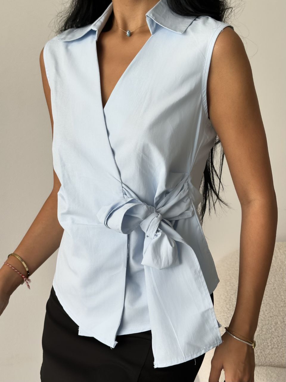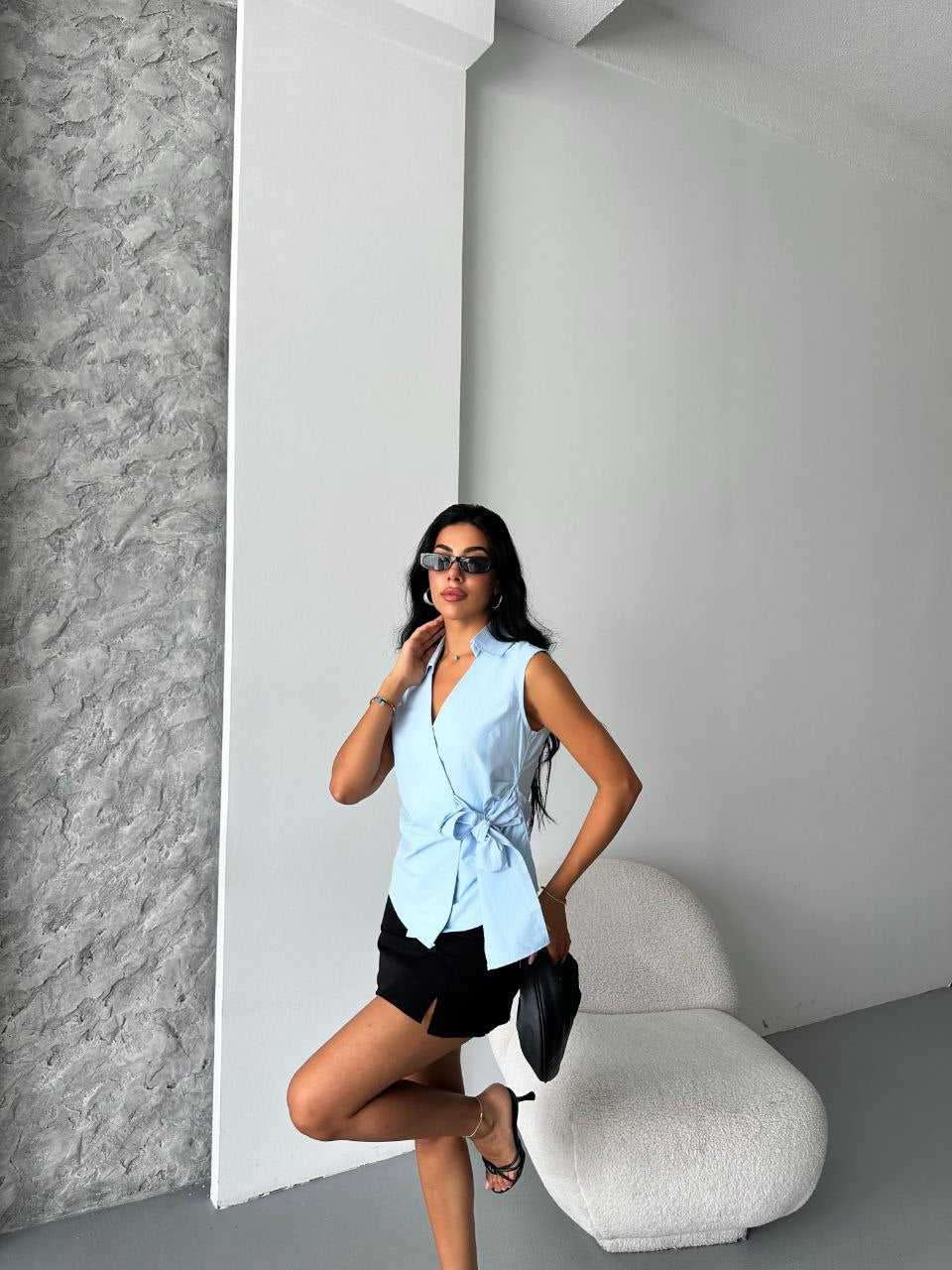 Fiyonklu Kolsuz Gömlek - Bebe Mavi