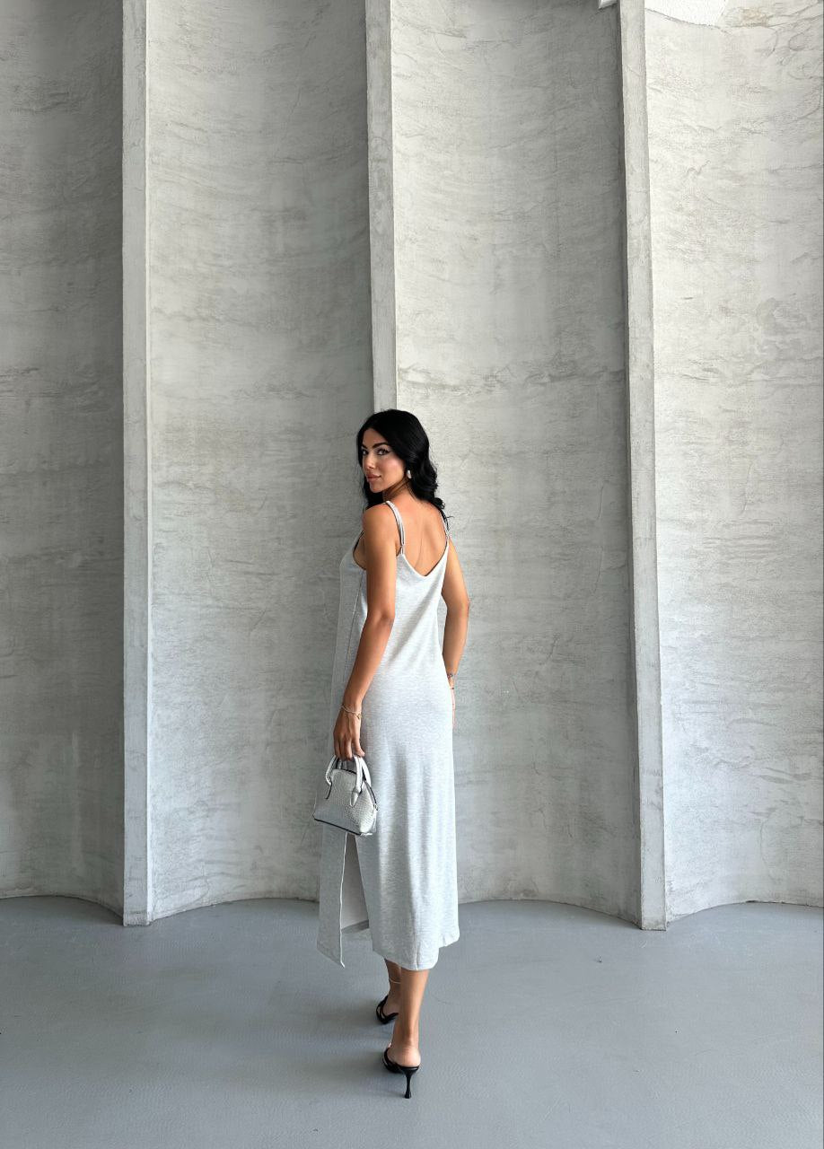 Kristal Askılı Elbise - Gri