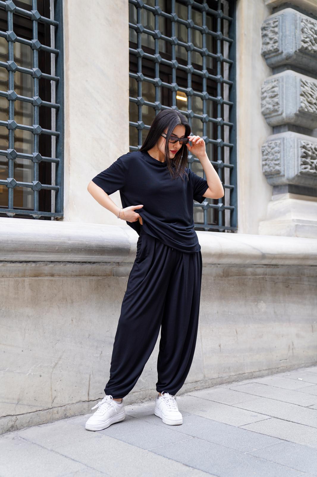 PANTOLON BOY : 94 CM , İÇ BACAK BOY: 65CM, BEL : 60 CM LASTİKLİ BASEN: 116